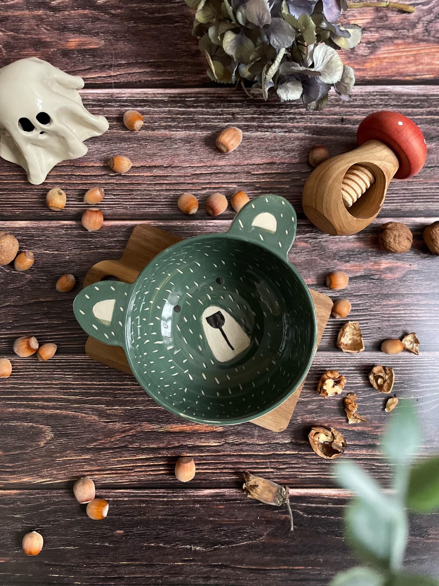 Les bols sont des pièces en grès blanc fabriquées au tour de potier.